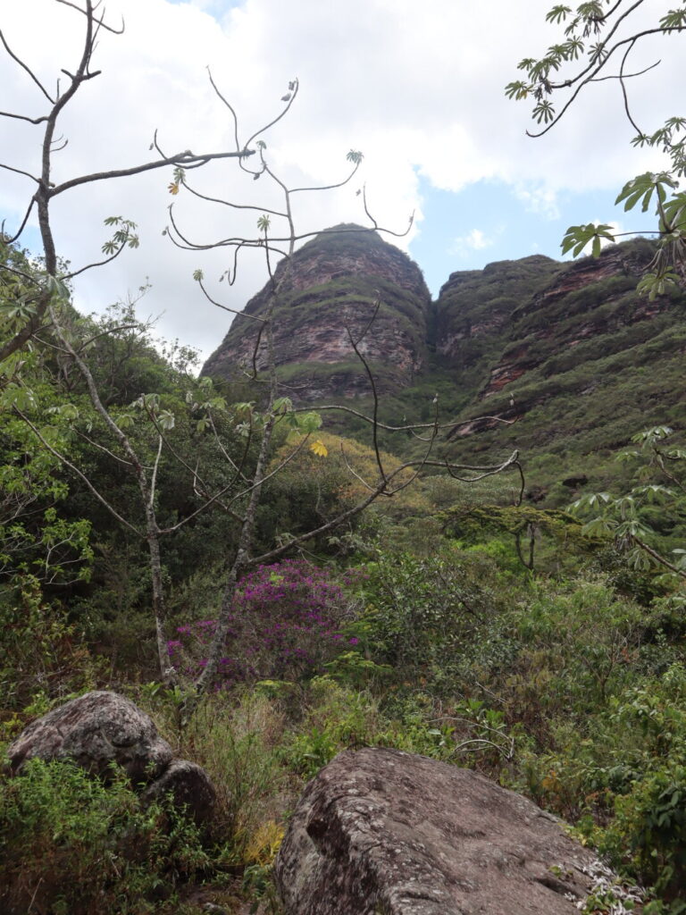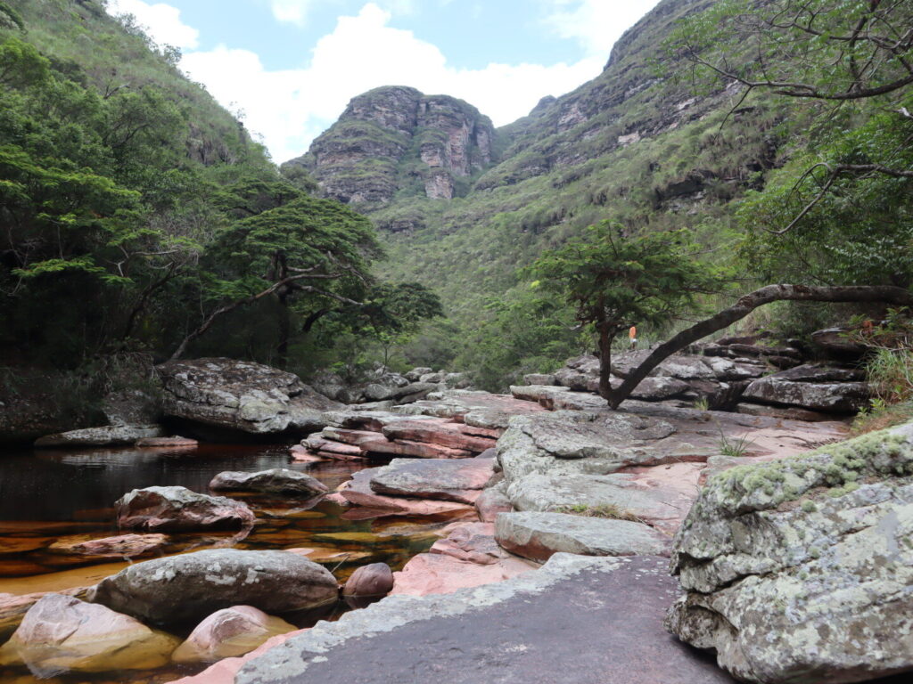 Il y a deux parties principales dans la Chapada Diamantina. La plus connue est le Vale do Pati, dont la porte d’entrée principale est Vila do Capão (il est aussi possible de rejoindre le Vale do Pati depuis Lençois, cela prend juste plus de temps), et qui concentre le plus de monde. Quasiment tous les tours organisés se rendent dans le Vale do Pati et font le tour des mêmes point d’intérêt. Depuis Lençois, il est possible de rejoindre une partie de la Chapada moins connue et donc moins arpentée, au sud-ouest de Lençois en gros. C’est là que nous avons marché, et à moins de vouloir les mêmes photos instagram que tout le monde, cela ne vaut pas moins le coup, peut-être même au contraire ! C’est très sauvage, on est très seuls, et c’est une région encore plus humide, ce qui offre plus de chance d’avoir de l’eau même en cas de forte sécheresse (le Vale do Pati était sec lors de notre visite.)